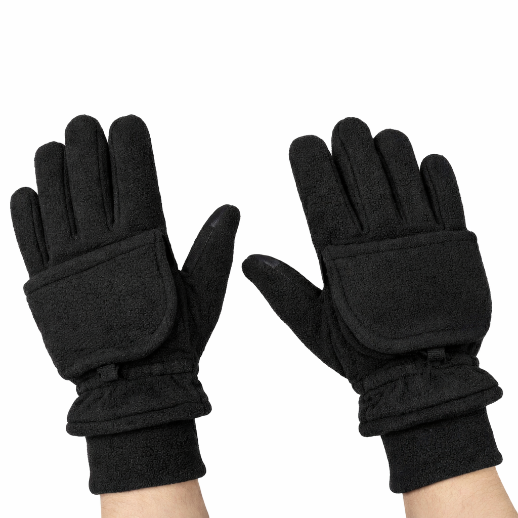 Designed for versatility and cold-weather performance, this dual-function fleece glove operates as both a half-finger glove and a full-finger mitten, offering adaptability for changing conditions. The fold-over outer cover can be instantly pulled over the fingers for added warmth and easily flipped back when dexterity is required.