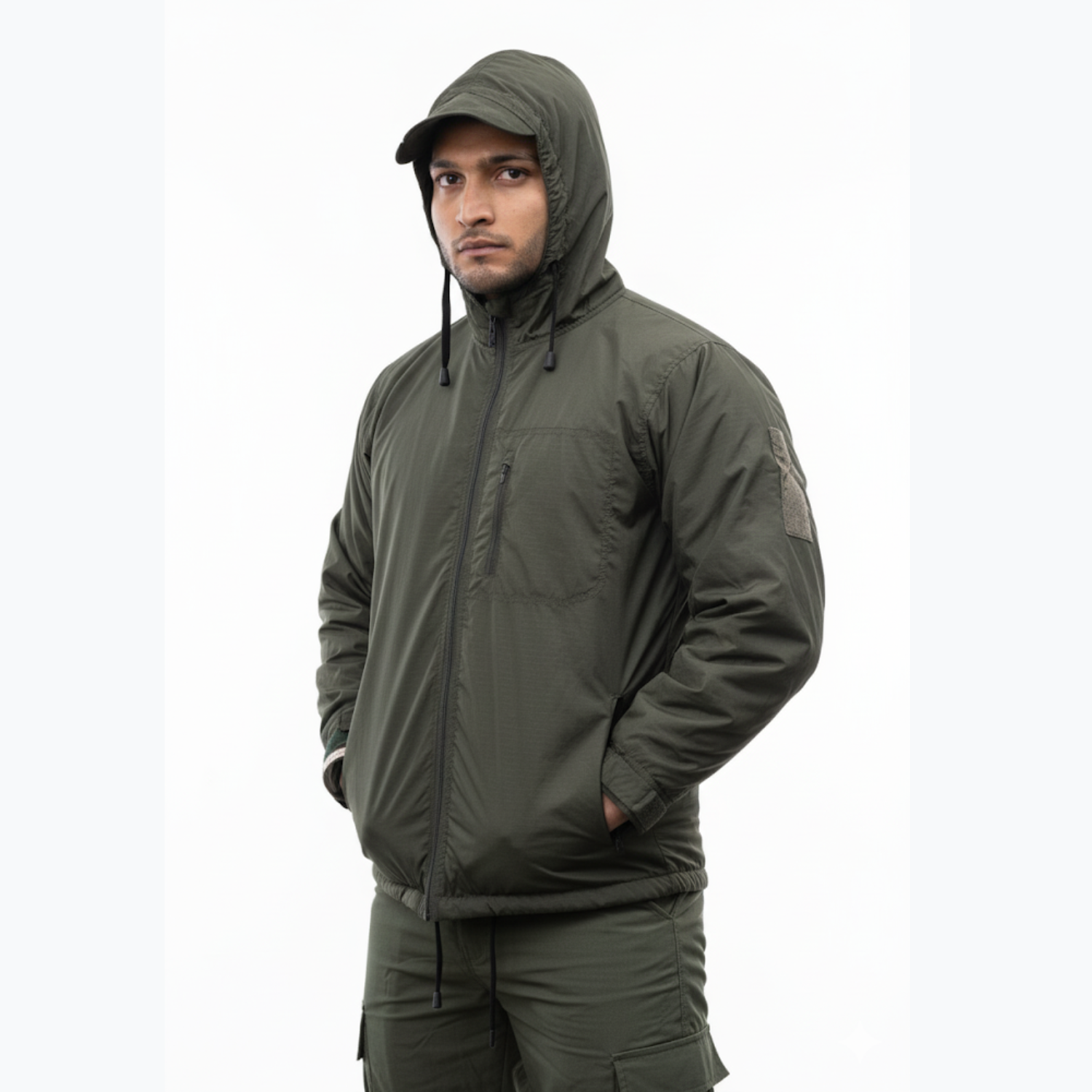 Engineered for rugged performance and cold-weather protection, this jacket is crafted from 100% nylon ripstop fabric that is fully air-proof, breathable, and waterproof. Built to withstand demanding conditions, it offers reliable defense against wind, moisture, and rapid temperature changes.