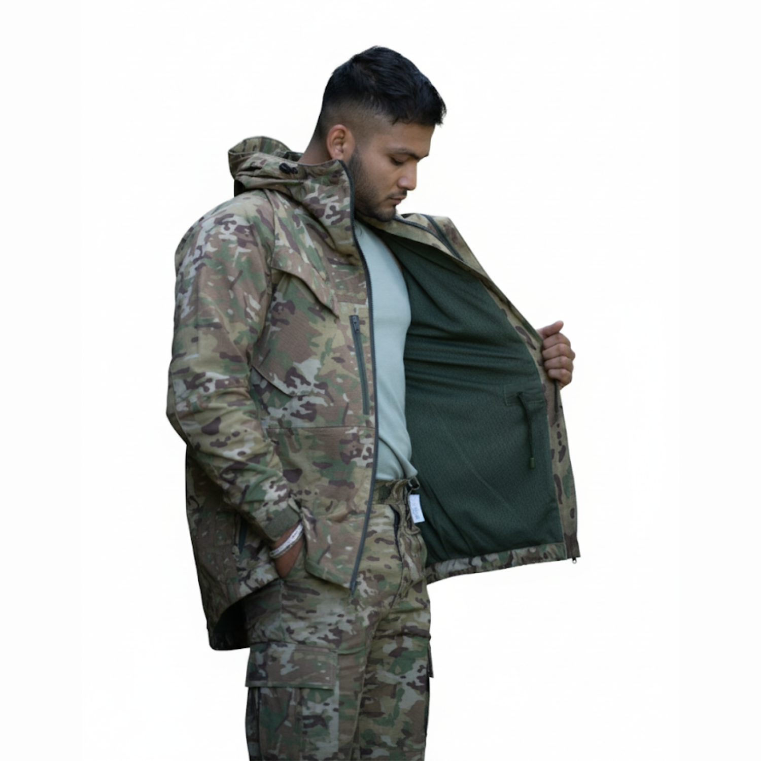 The extended cut offers enhanced protection against wind, dust, and harsh weather, while the moisture-wicking net lining ensures dryness and comfort during long hours of movement. Engineered for maximum functionality, this jacket features seven strategically placed pockets, an adjustable hood with visor, adjustable cuffs, underarm ventilation, and heavy-duty YKK® zippers for reliable performance in all conditions.