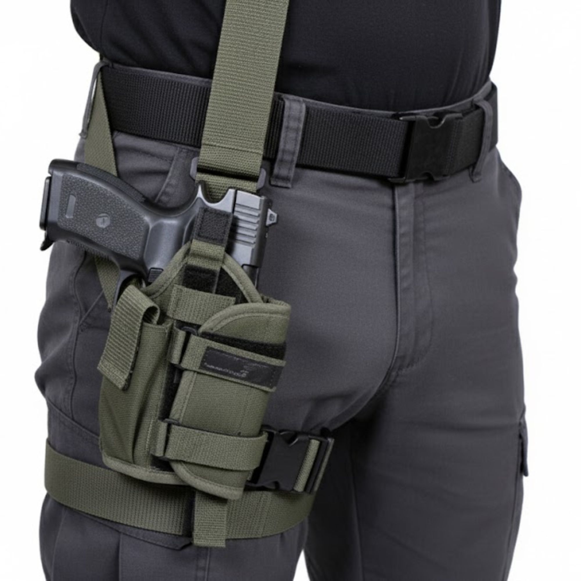 Engineered for rapid access and secure firearm retention, the Pistol Holster – Drop Thigh is designed to meet the demands of law enforcement personnel, security professionals, and tactical enthusiasts. The drop-leg configuration positions the firearm for a natural draw, improving speed and accessibility during high-mobility operations.