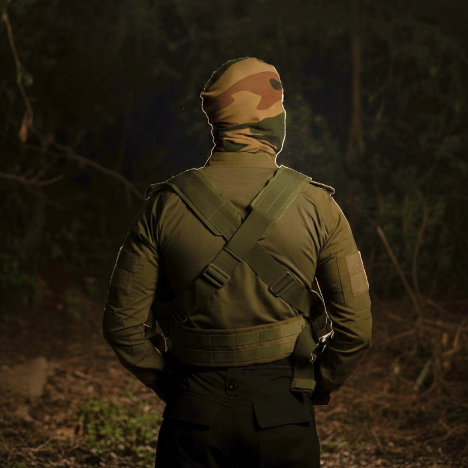 Designed for breathability and comfort, the open-back configuration enhances airflow, making it suitable for hot and humid environments. Fully adjustable shoulder and waist straps allow compatibility over uniforms, combat shirts, or outer layers.